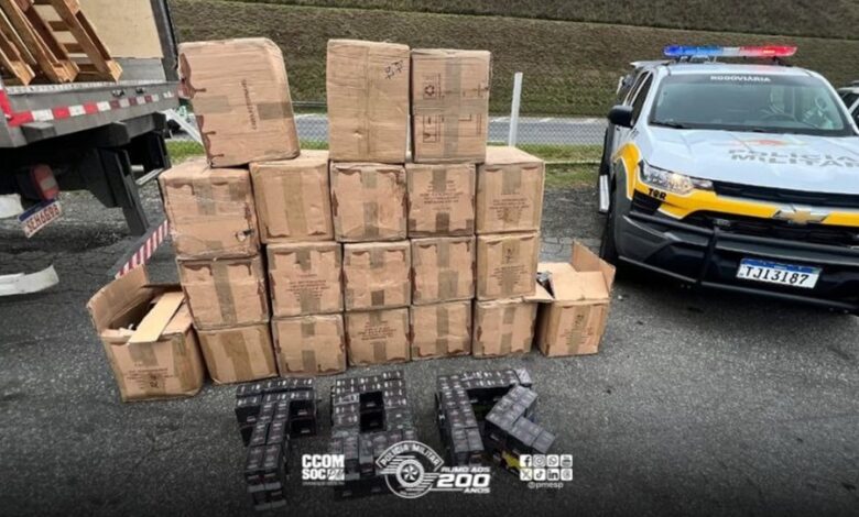 A Polícia Rodoviária prendeu, na quinta-feira (9), um homem em Taboão da Serra por transportar 9.600 cigarros eletrônicos, produtos cuja comercialização é proibida no Brasil. A carga, avaliada em cerca de R$ 1,2 milhão, estava escondida entre fardos de papelão em um caminhão abordado durante fiscalização.