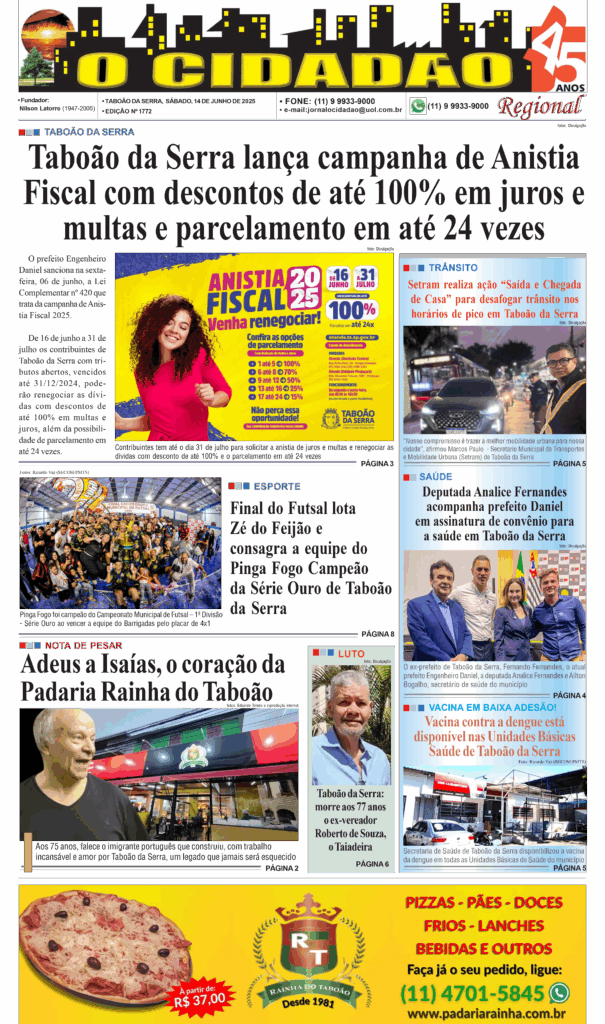 Início/Edição Impressa Edição Impressa Edição 1784 - 28 de fevereiro de 2026 Edição 1783 - 20 de dezembro de 2025 Edição 1782 - 15 de novembro de 2025 1781 - 18/10/2025 1780 - 04/10/2025 1779 - 20/09/2025 1778 - 06/09/2025 1777 - 23/08/2025 1776 - 09/08/2025 1775 - 26/07/2025 1774 - 12/07/2025 1772 - 14/06/2025 1772 - 14/06/2025 1771 - 31/05/2025 1770 - 17/05/2025 1769 - 05/04/2025 1768 - 15/02/2025 1767 - 21/12/2024 Facebook Twitter Messenger Messenger WhatsApp Compartilhar via e-mail Imprimir